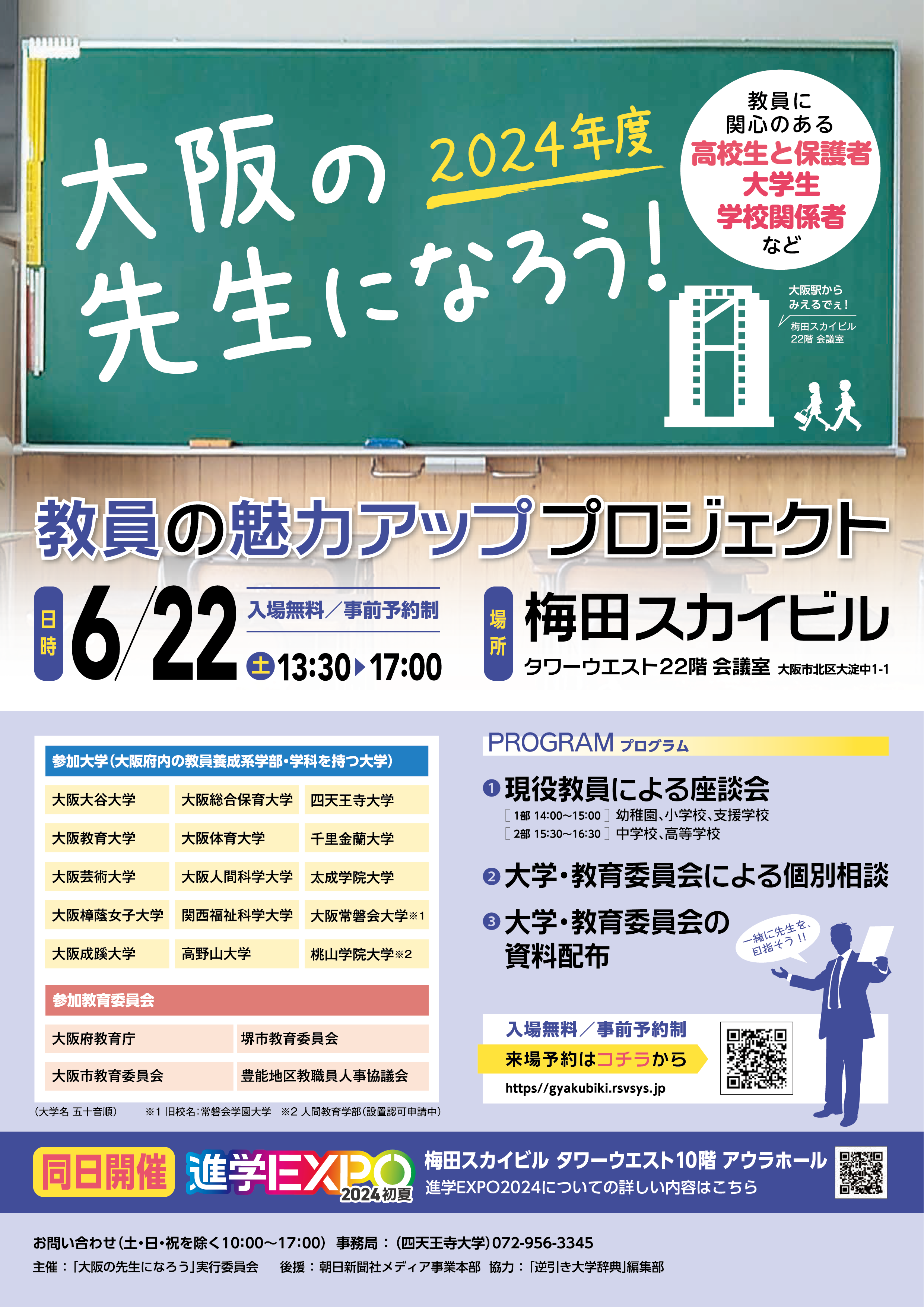 教員の魅力アッププロジェクト「大阪の先生になろう!」が開催されます。