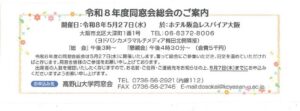 令和8年度 同窓会総会のご案内